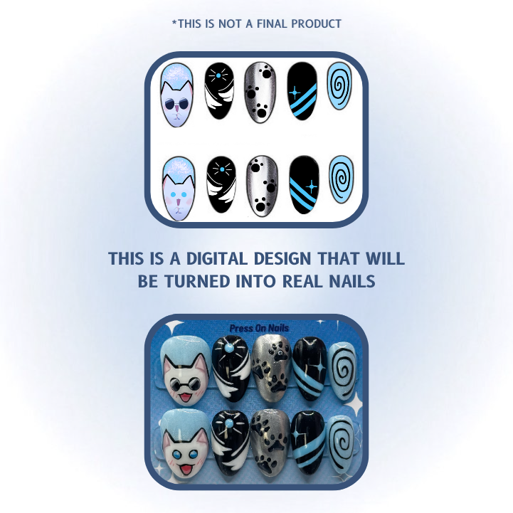 The digital nail design will be turned into real nails. You get to pick the length and the shape, but the design is pre-chosen.